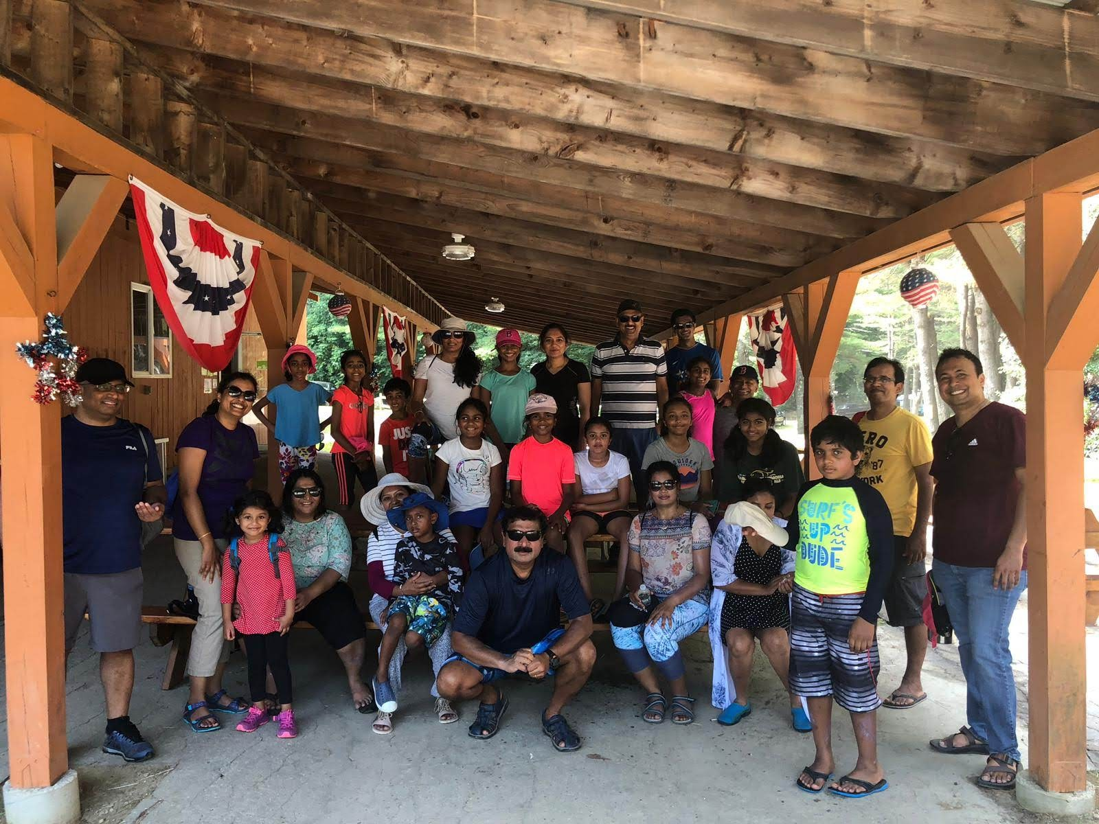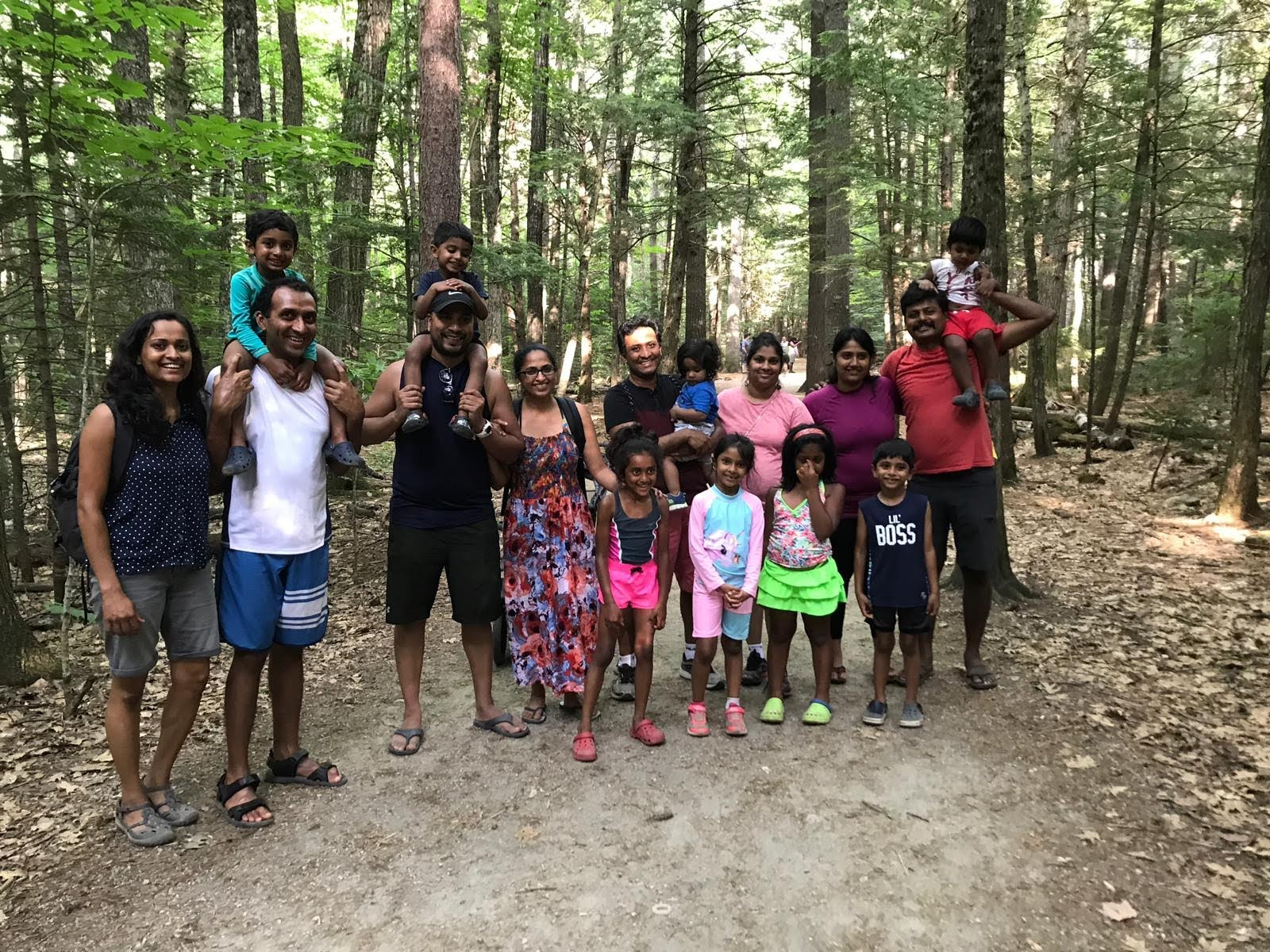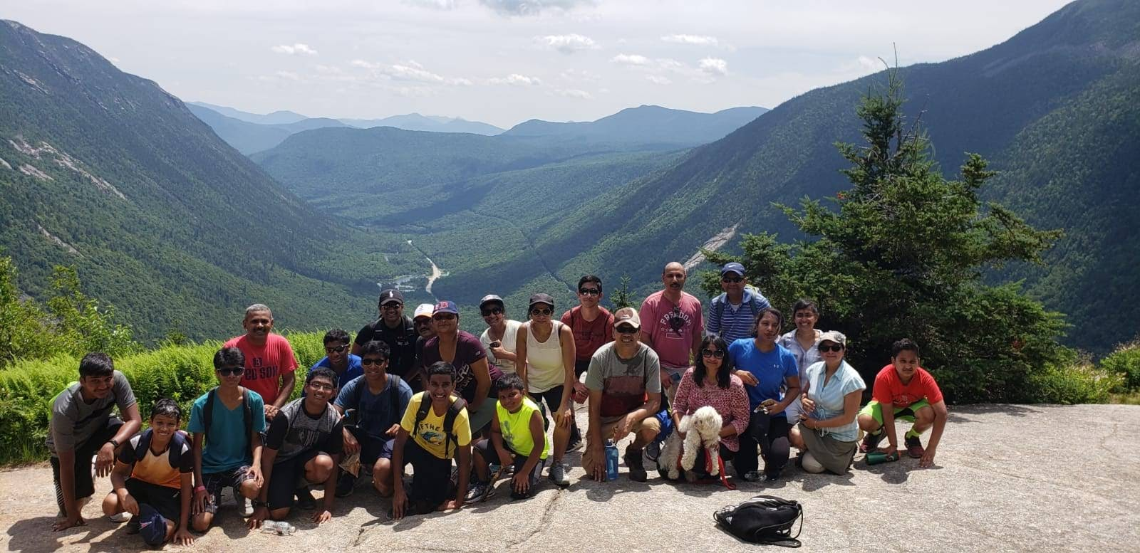 Well, it all started back in late spring when we started thinking about the summer camping event. The wish-list list was huge. However, staying close to each other bubbled up to the top. We were lucky enough to find EasternSlope Camping ground on the bank of Saco river near North Conway, NH that met multitude of our requirements. We had booked 25 campsites for three nights and four days beginning 19th July to 22nd July. Great number of families signed up to swell our party to a humongus 114 people strong! Many of us, including me, were first time campers in a tent and were very circumspect. However, the veterans calmed the newbies nerves and helped everyone get right gear, making them look forward to camping.