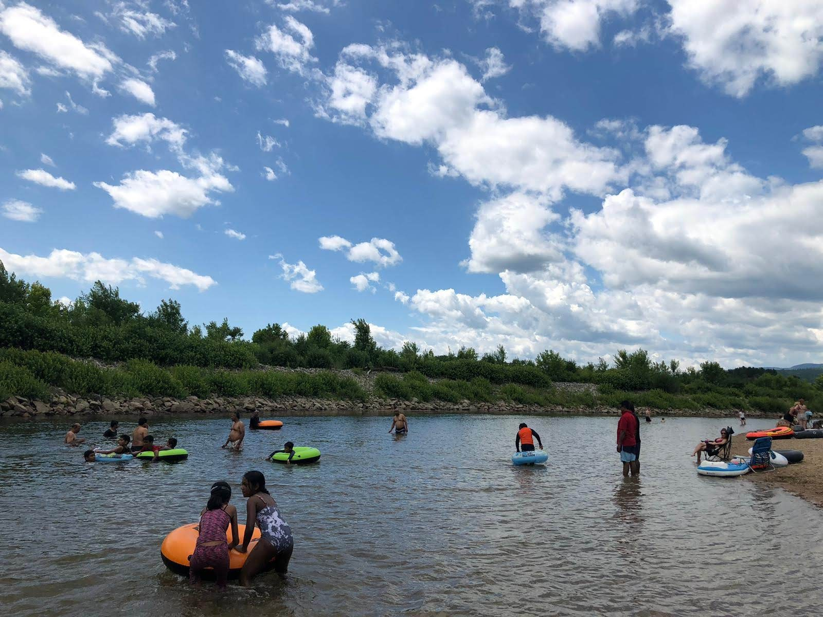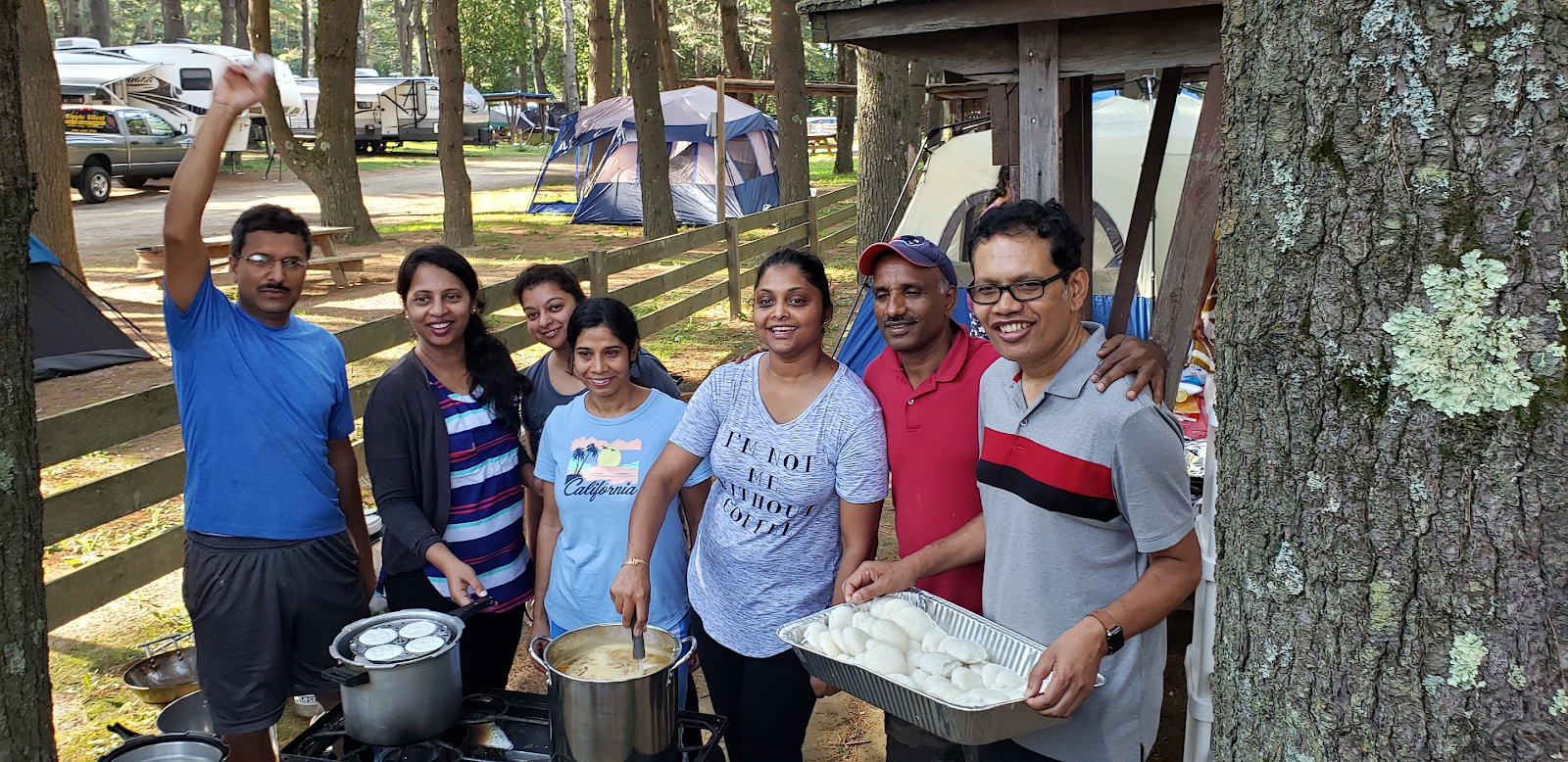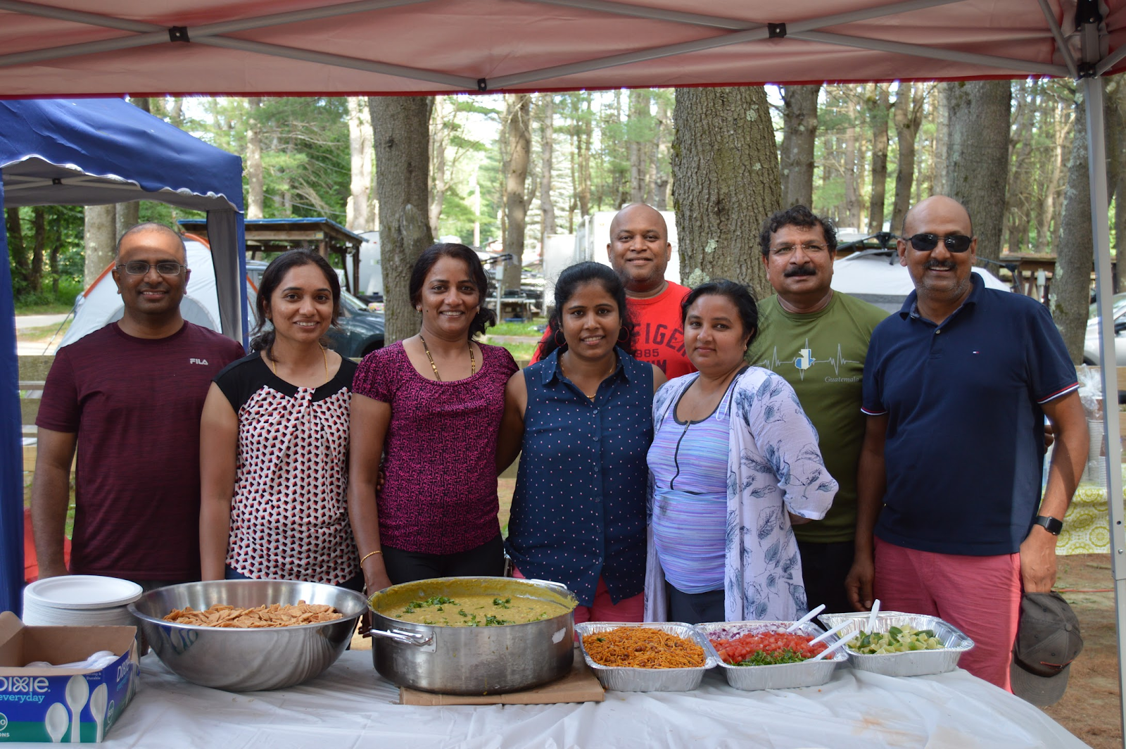 On Sunday, we all chose to stay together at campsite and have fun. After an early breakfast of chow-chow bath, we played Bocce Ball, Lagori and Cricket. The energy level was high, the sun was burning atop and the kids were pleading to get in the water. So, we all went to Saco with snacks, beverages and Volleyball kit. The hot sand didn’t deter us from playing beach volleyball, while we had some melodious background songs from a group of our ladies playing Anthakshari in the middle of shallow waters of the Saco river. Another bunch of folks were happily herding all the little ones in the water with the tubes. It was really one BIG happy family at the beach! After evening snacks of masala-puri and dinner later, some of them decided to cut it short to get back to work the next day. While lucky others, continued their merry ways!